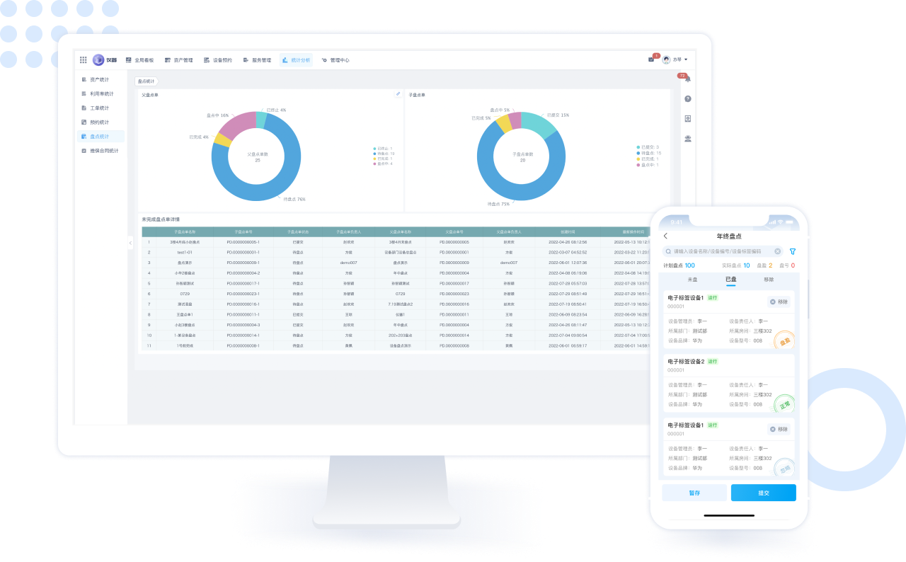 资产盘点对仪器设备进行规范化管理,并且优化灵活配置、资产管理等功能,帮助客户高效管理。